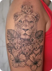 Chaque projet est étudié en fonction du visuel, de l’emplacement et de la taille, afin d’obtenir un tatouage lisible et équilibré. Le réalisme en noir et gris reste aujourd’hui l’un des styles les plus demandés pour des pièces détaillées et durables.